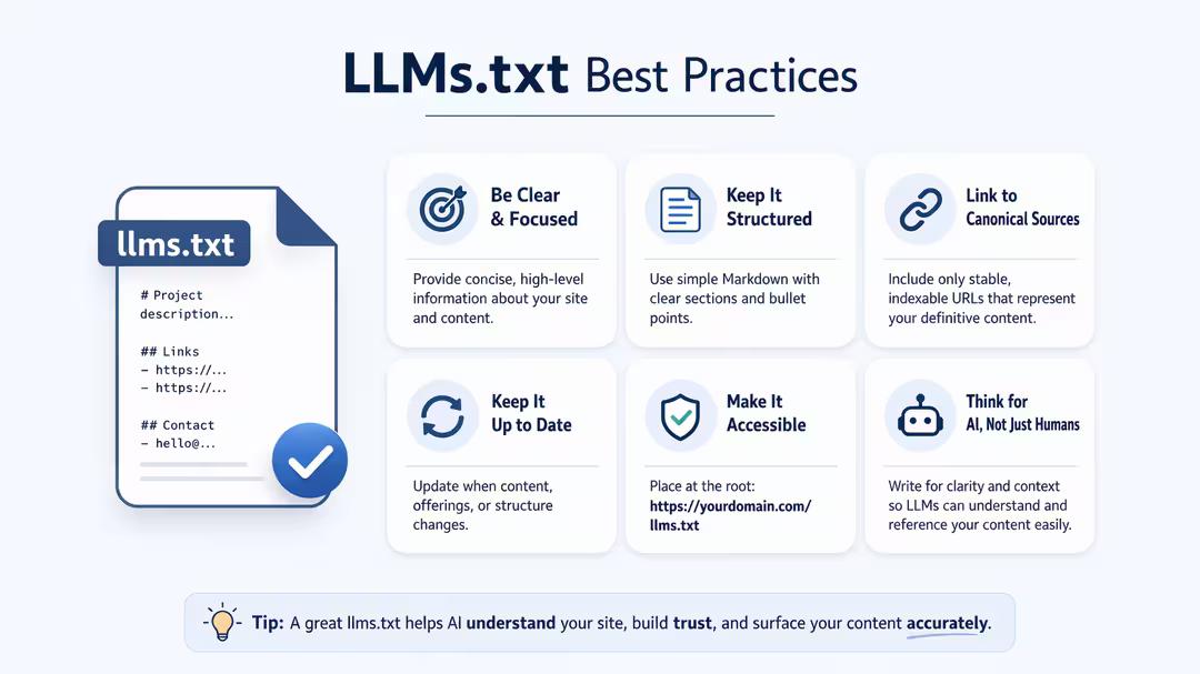Learn how to create, structure, and validate an llms.txt file. Includes Stripe's real example, setup steps for WordPress and Shopify, and an LLM indexing checklist.