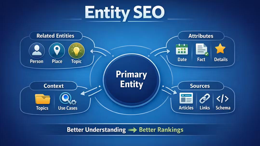 Entity SEO focuses on optimizing content around specific "things" — people, brands, places, and concepts — instead of keyword strings. This guide covers how Google uses entities, how to find them with SEO entity tools, and how to use Schema markup to rank in AI-driven search.